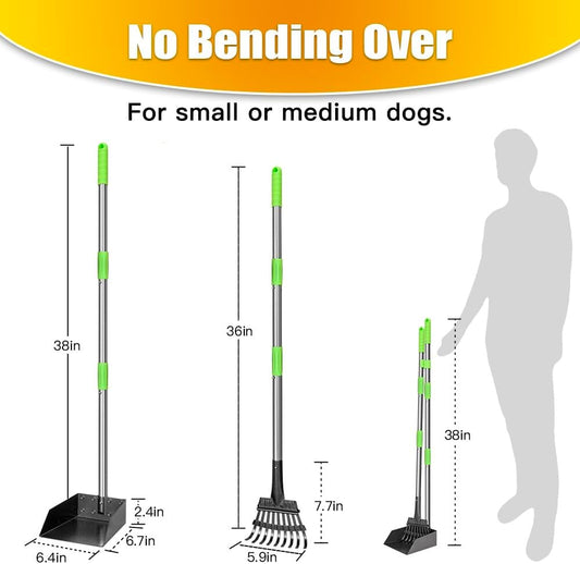 Pooper Scooper, Dog Pooper Scooper Long Handle Stainless Metal Tray and Rake for Medium Small Dogs Heavy Duty Pet Supplies to Use for Grass, Dirt or Gravel